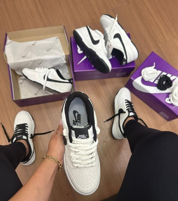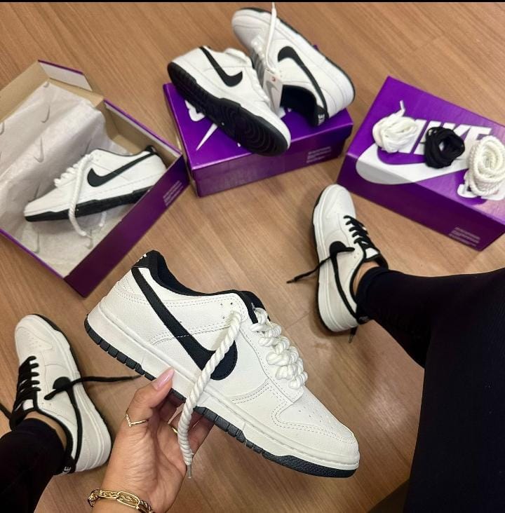 O Dunk Branco Preto é o tênis perfeito para quem curte visual street clássico em preto e branco com conforto o dia todo